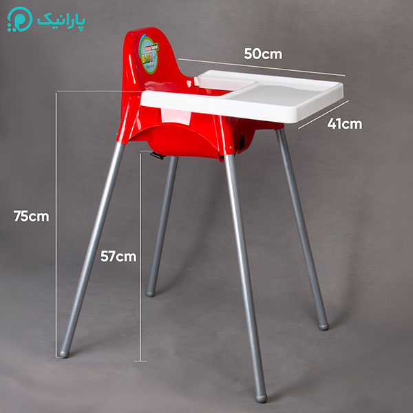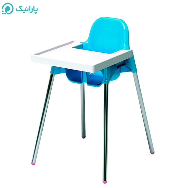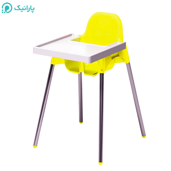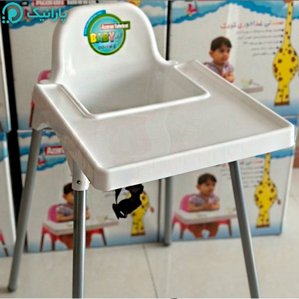 این صندلی برای سنین نوزادی تا حدود 5 سالگی مناسب می باشد. نوع طراحی این صندلی به گونه ای است که پایه های آن کاملا ایستا می باشند. این امر موجب می شود که کودک هنگام نشستن دارای تعادل کافی باشد. ویژگی ها پایه های این صندلی از جنس فلز و با آبکاری نیکل کروم ساخته شده است. این امر سببب جلوگیری از سایش و زنگ زدگی می شود. در زیر پایه ها از پاشنه هایی پلاستیکی استفاده شده است. این پاشنه ها به صندلی کمک می کنند تا در سطوح مختلف، ایستایی لازم را داشته و از سر خوردن آن جلوگیری می کنند. همچینین این کالا مجهز به کمربند ایمنی نیز بوده، و در اطراف نشیمن آن حصارهایی جهت امنیت بیشتر کودک تعبیه شده است. سینی غذای کودک در این صندلی به رنگ سفید ساخته شده است. این موضوع به نشان دادن بهتر آلودگی ها کمک کرده تا هیچ خطری سلامتی کودک را تهدید ننماید. همچنین این سینی قایبلیت جدا شدن از صندلی را دارد تا نظافت و شست و شوی آن راحت تر باشد.